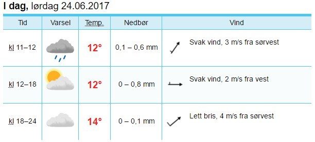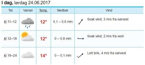 Det kom mye nedbør natt til lørdag og tidelig lørdag morgen, men ifølge meteorologene blir det nå lettere skydekke og rolige vindforhold utover ettermiddag.