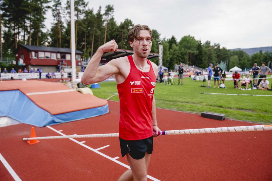 Lørdag forbedret han sin egen norske rekord med én centimeter til 5,86 meter. 21-åringen forsøkte seg også på 5.90, men klarte ikke det.