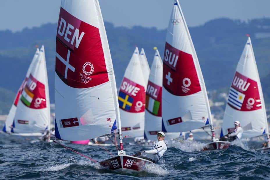 Line Flem Høst vant den tredje OL-seilasen i Laser Radial og gikk dermed i ledelse sammenlagt. Det skal avvikles ytterligere en seilas mandag.