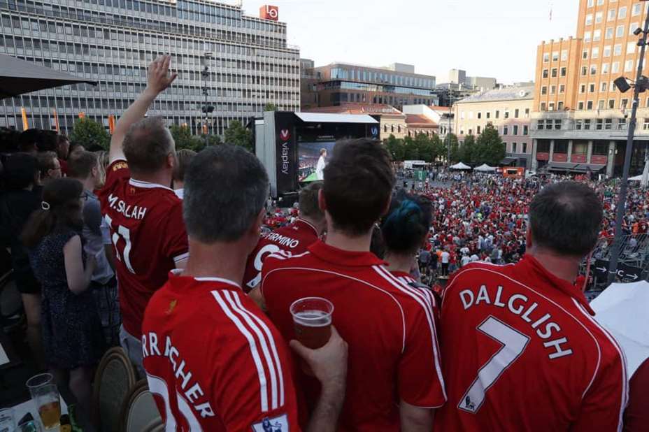 Liverpools tilhengere er i flertall i Norge. Nylig rundet den norske supporterklubben 50.000 medlemmer. Bildet er tatt på Youngstorget i forbindelse med fjorårets mesterligafinale. Foto: Terje Bendiksby / NTB scanpix