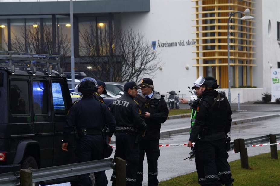 Flere elever gråt og fikk hjelp av helsepersonell i kirken etter evakueringen av Åkra videregående skole i dag.