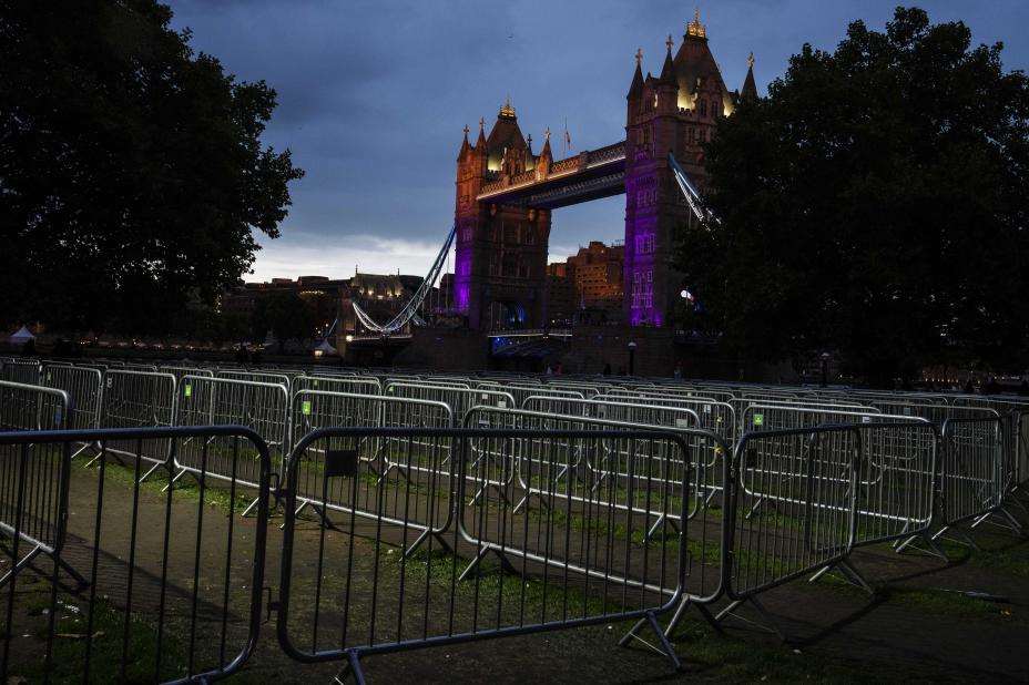 Kommunalt ansatte i London-bydelen Southwark, der køen begynte, sa mandag at de inspiserte ruten og ryddet søppel. Etter en pause under begravelsen fortsatte arbeidet i Southwark Park.