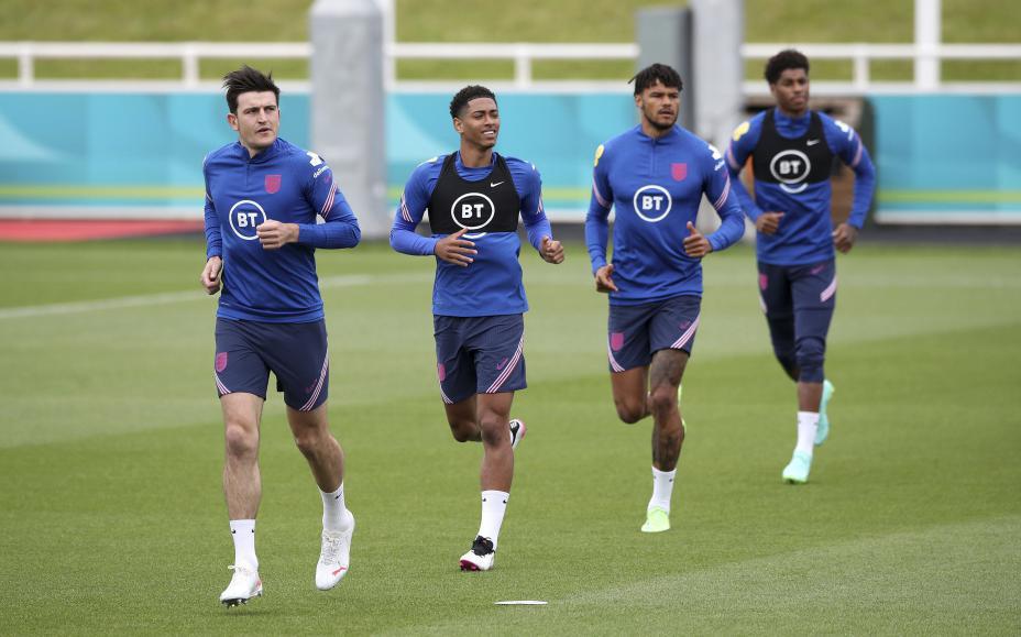 Harry Maguire (foran) er ikke aktuell for spill for England søndag. Foto: Nick Potts/PA via AP / NTB