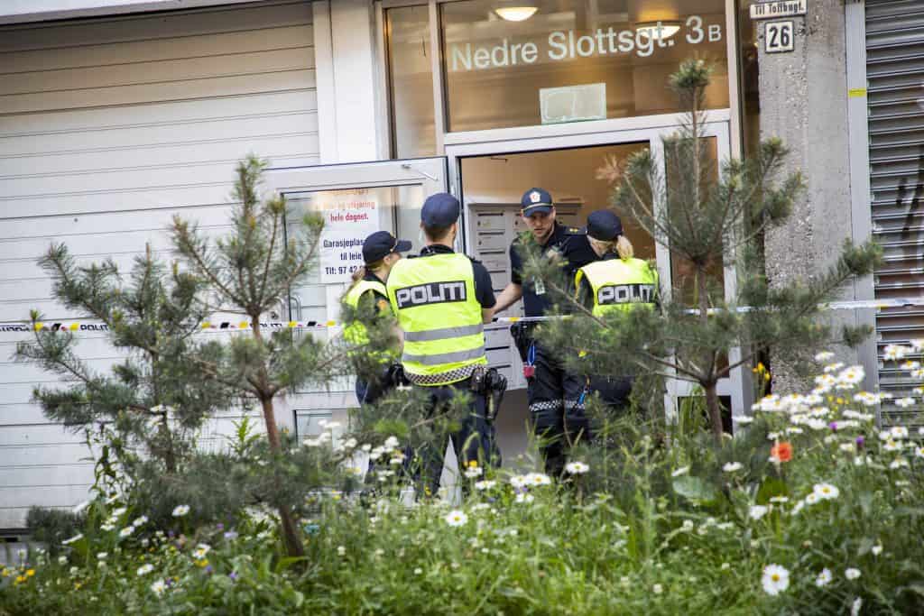 Pågripelsen skjedde i en leilighet i Nedre Slottsgate, der politiet skjøt seg inn i en leilighet.