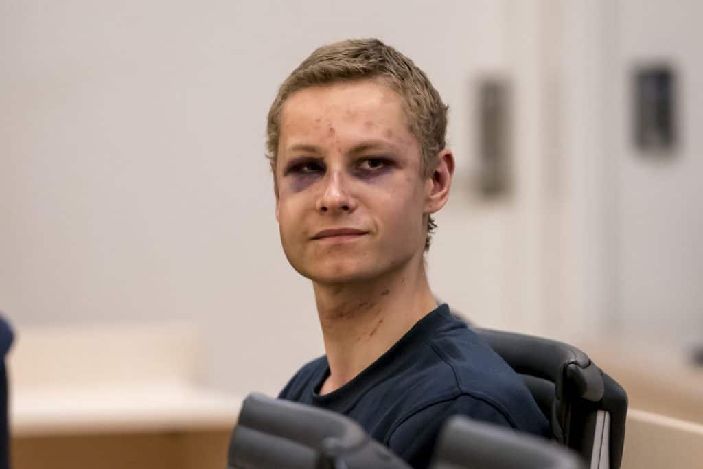 Under den første fengslingen av 22-åringen den 12. august hadde han tydelige merker og hevelser i ansiktet etter slagsmålet i moskeen som han angrep.