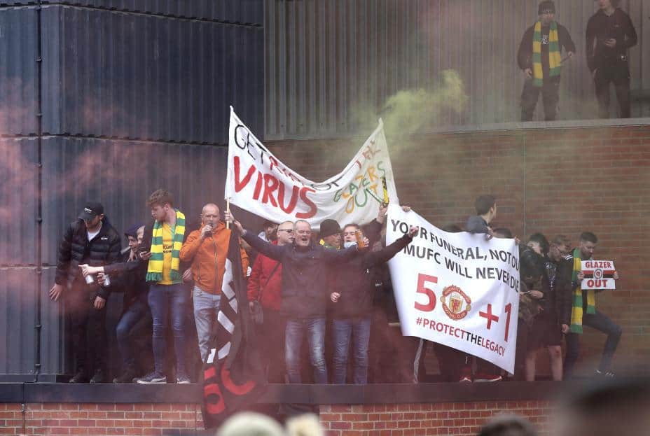Opp mot 10.000 United-fans samlet seg rundt arenaen for å framføre sin misnøye med den amerikanske eierfamilien Glazer.