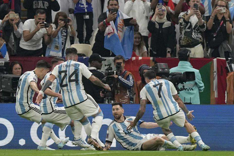 Lionel Messi sendte Argentina i ledelse i det 23. minutt i VM-finalen i fotball mot Frankrike. Han var iskald på straffespark etter at Angel Di Maria ble felt.