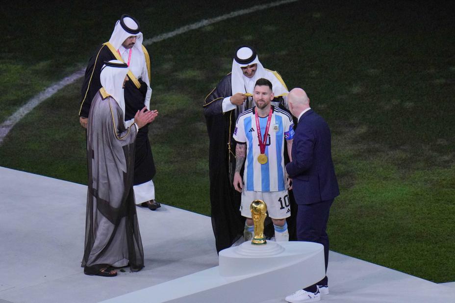 Emiren av Qatars drapering av VM-kongen Lionel Messi under seiersseremonien søndag kan ha vært et brudd på Fifas egne klesregler.