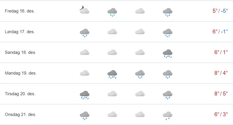 Temperaturene er ventet å ligge på mellom 5 og 8 grader frem mot jul.