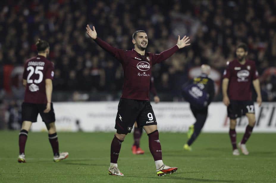 Men Salernitana, som sto med tre seirer på 23 kamper, utlignet til 1-1 etter en knapp halvtime. Federico Bonnazzoli brassesparket inn utligningen på akrobatisk vis.