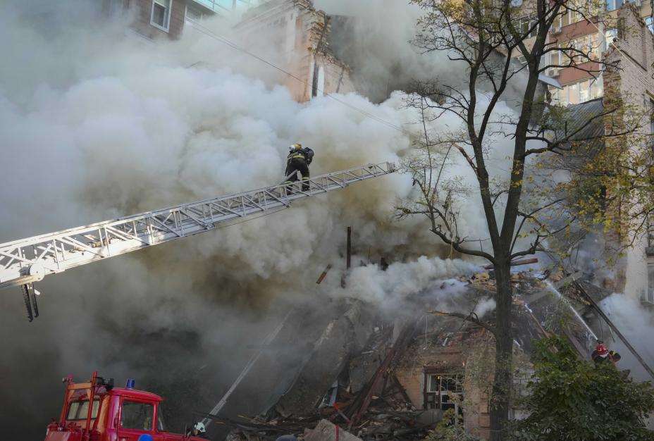 Ordfører Vitalij Klitsjko i Kyiv meldte at angrepene forårsaket en brann og ødela flere bygninger i det sentrale Sjevtsjenkivskyj-distriktet. Ukrainas nasjonale jernbaneselskap har også meldt om angrep i nærheten av Kyivs sentralstasjon.