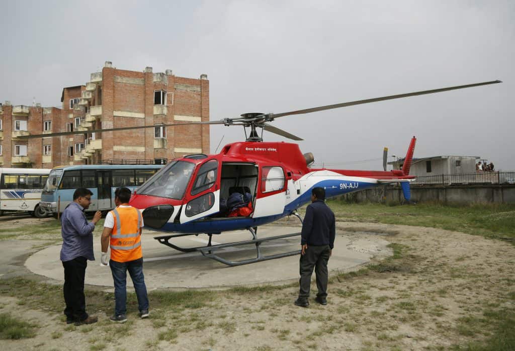 Ulykker og naturkatastrofer: Flyet, en Twin Otter, skled av rullebanen og traff helikopteret da det forsøkte å ta av, opplyser Raj Kumar Chhetri fra nepalske luftfartsmyndigheter.