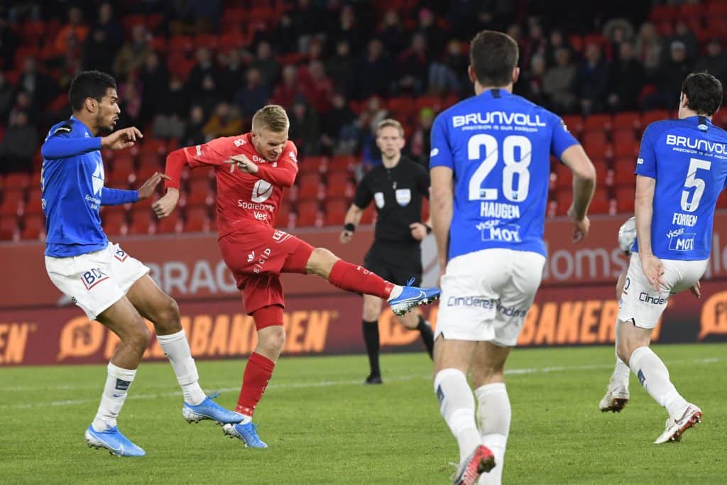 Moldes Kristoffer Haugen sto for kampens første nevneverdige sjanse da han smelte ballen i nettveggen etter elleve minutter. Magnus Wolff Eikrem vartet opp med flott forarbeid, men Haugens avslutning fant feil side av nettmaskene.