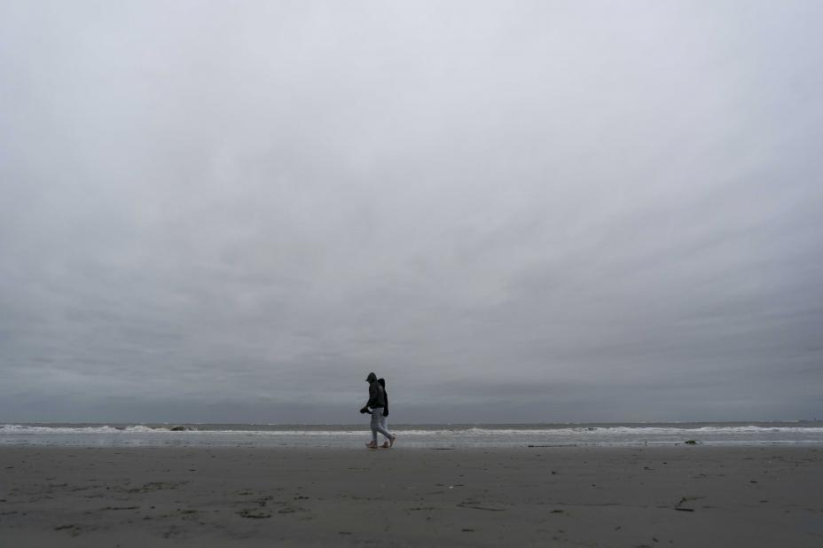 Folk på stranda på Sullivan's Island i South Carolina før orkanen Ian ventes å ramme delstaten. Foto: Alex Brandon / AP / NTB