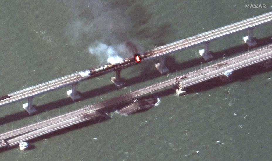 Krig og konflikter: Brua har stor betydning som forsyningslinje for de russiske styrkene i Ukraina, særlig styrkene som kjemper for å holde linjen mot ukrainsk framrykking i sør.