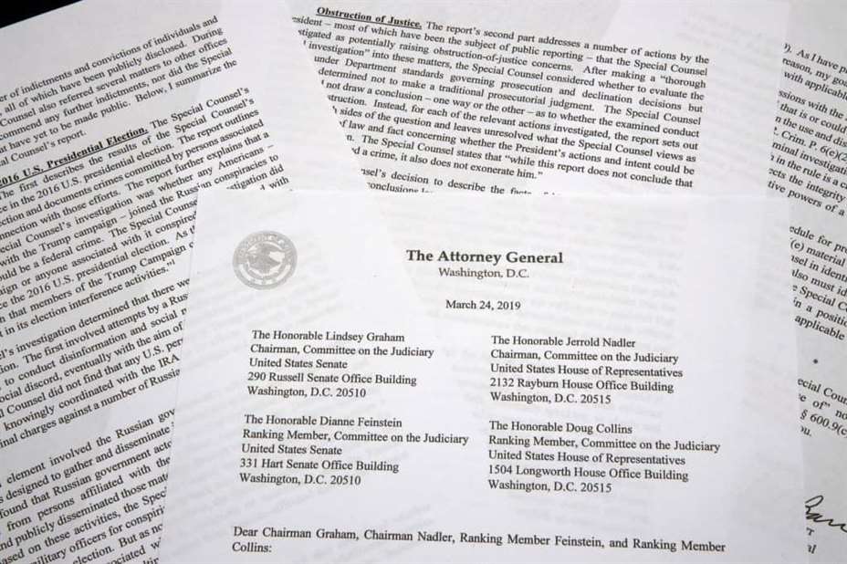 Politikk: Robert Muellers gransking frikjenner ikke Donald Trump for anklager om å ha hindret etterforskningen, men beviser heller ikke noen forbrytelse, ifølge justisminister William Barrs brev til Kongressen.
