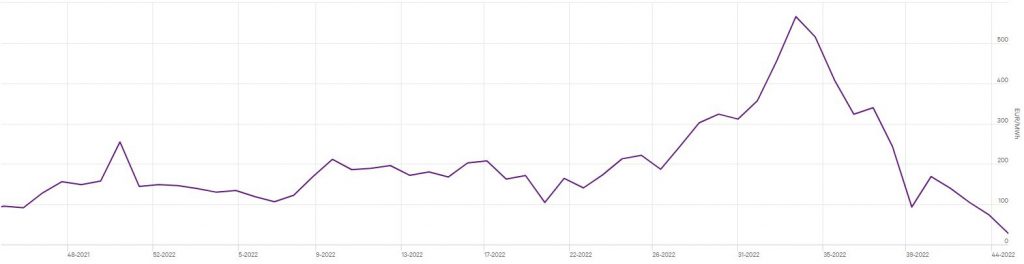 Vannmagasinene er nå over normalen for årstiden i Norge og gassprisene er redusert med 70 prosent ettersom gasslagrene i Europe ble fullt opp. Disse to faktorene er hovedårsaken til at prisene fra oktober har normalisert seg.