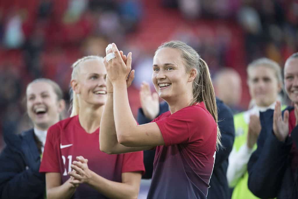 Cecilie Fiskerstrand (LSK Kvinner), Oda Maria Bogstad (Arna-Bjørnar), Aurora Mikalsen (Manchester U.), Ingrid Moe Wold (LSK Kvinner), Maren Mjelde (Chelsea), Maria Thorisdottir (Chelsea), Synne Skinnes Hansen (LSK Kvinner), Tuva Hansen (Klepp), Kristine Bjørdal Leine (Reading), Ina Gausdal (LSK Kvinner), Kristine Minde (Wolfsburg), Frida Maanum (Linköping), Rikke Bogetveit Nygard (Arna-Bjørnar), Ingrid Syrstad Engen (Wolfsburg), Lisa Naalsund (Sandviken), Karina Sævik (Paris Saint-Germain, Amalie Eikeland (Reading), Guro Reiten (Chelsea), Vilde Bøe Risa (Koppabergs/Göteborg), Caroline Graham Hansen (Barcelona), Lisa-Marie Karlseng Utland (Reading), Elise Thorsnes (LSK Kvinner), Isabell Herlovsen (Kolbotn).