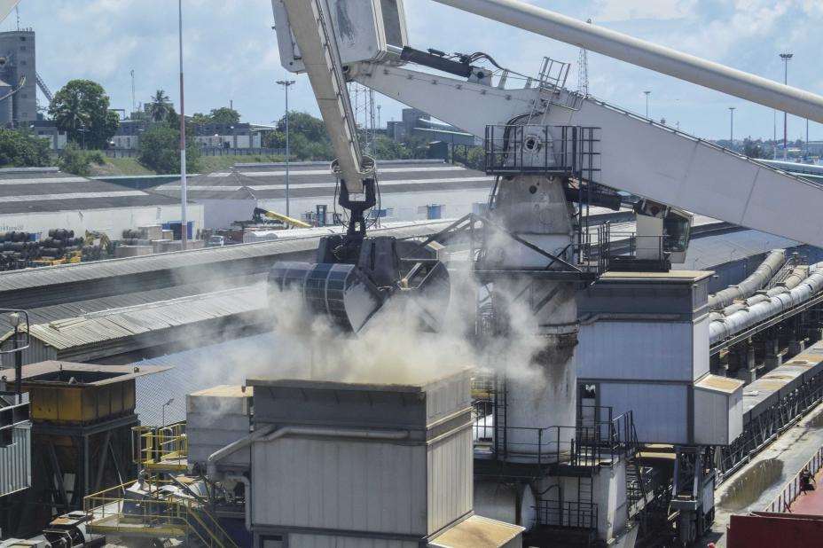 Korn blir satt i land fra frakteskipet Eaubonne i Mombasa i Kenya lørdag 26. november. Fartøyet ankom Kenya med 53.300 tonn hvete, som del av de separate, men likelydende kornavtalene inngått mellom Russland og FN og Ukraina og FN. Kornavtalene sørger for at korn kan fraktes via Svartehavet. Foto: Gideon Maundu / AP / NTB