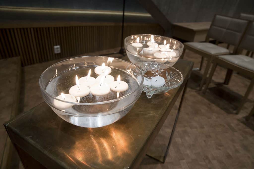 Søndag kveld ble det tent lys i Nordlyskatedralen i Alta til minne om de omkomne i ulykken. Foto: Terje Pedersen / NTB scanpix