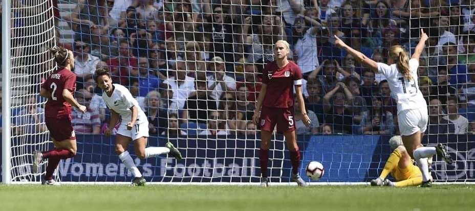 Sport: England er nummer tre på FIFA-rankingen og har bronsemedaljer å forsvare fra forrige VM, men fikk det ikke til da de hjemlige forberedelsene ble avsluttet foran 20.000 tilskuere i Brighton. Sarah Gregorius scoret kampens eneste mål for New Zealand.