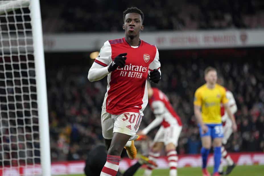Arsenal-spiller Eddie Nketiah spiller nesten bare i ligacupen. Der herjer han, og tirsdag ble det hattrick da Sunderland ble slått 5-1 i kvartfinalen.