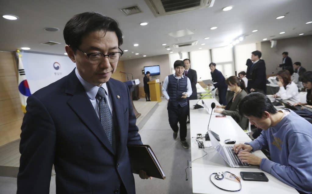Den sørkoreanske statssekretæren Chun Hae-sung opplyste fredag at Nord-Korea har trukket seg fra landenes felles samarbeidskontor. Foto: Ahn Young-joon / AP / NTB scanpix