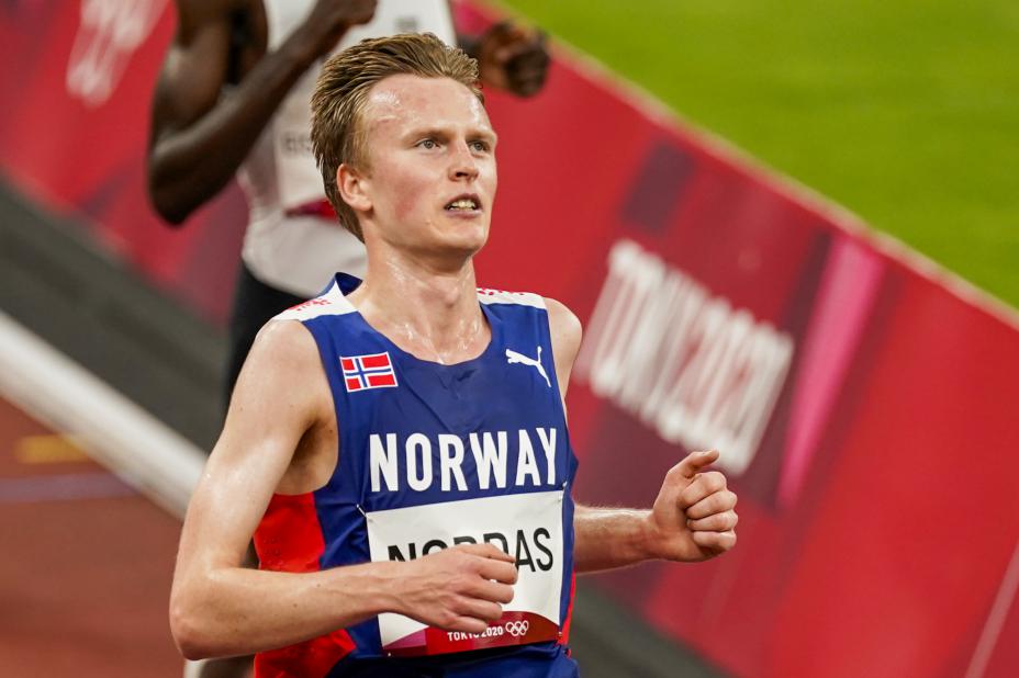 På 5000 meter er dette de norske kravene: 13.13,50 (VM) og 13.24,00 (EM). Nordås prøvde seg på distansen i fjorårets OL i Tokyo.