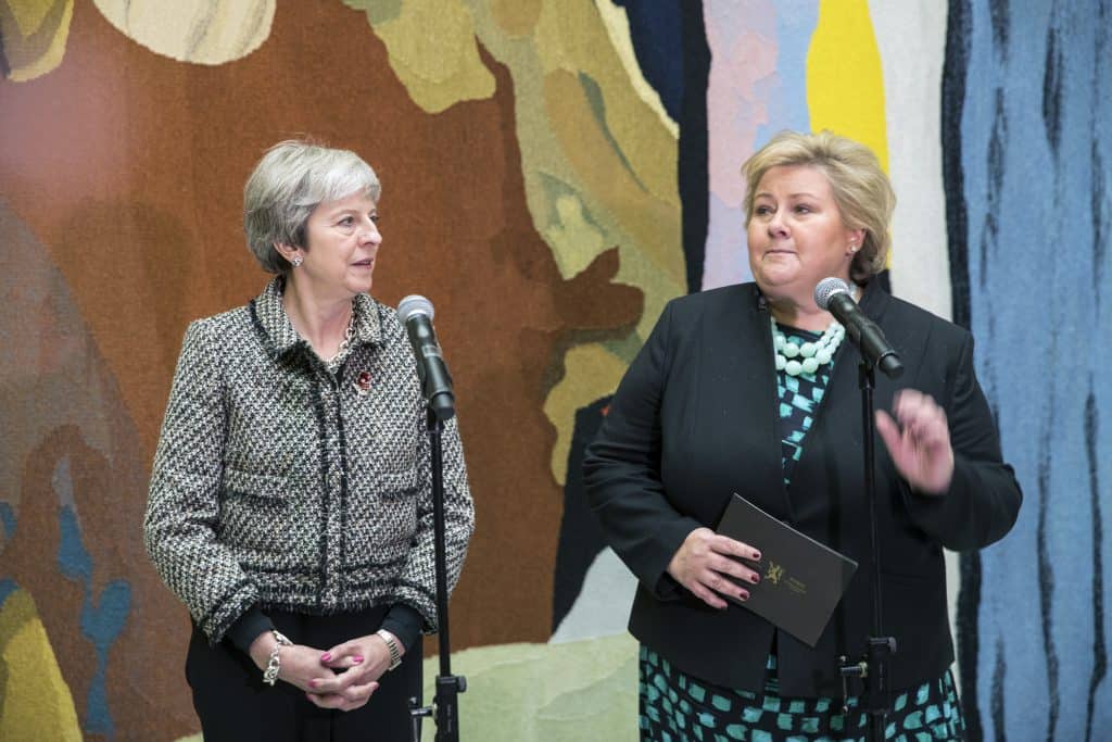 – Skulle det bli «no deal» mellom EU og Storbritannia, kan jeg bekrefte at statsminister May og jeg er enige om at Norge og Storbritannia vil sette i verk en omfattende avtale. Vi vil behandle alle britiske statsborgere som bor i Norge slik at de får samme mulighetene som de har hatt tidligere. Dette vil være betryggende for fremtiden til briter i Norge og deres familier. De er velkomne til å bli, sa Erna Solberg.