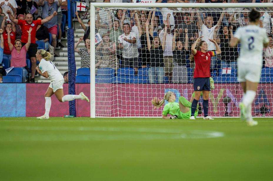 De første minuttene så det ut som Norge hadde en plan som fungerte. De dyttet England tilbake med noen langpasninger, fant rom til å spille og holdt vertene unna sin egen banehalvdel. I VM-kvartfinalen i 2019 scoret England før det var spilt tre minutter. Denne gang nærmet ikke hvittrøyene seg Norges felt før det var spilt nesten ti. Men da kom Maria Thorisdottir på feil side i en duell med Ellen White, og England fikk straffespark. Sterke norske protester nyttet ikke, og Georgia Stanway banket ballen i hjørnet.