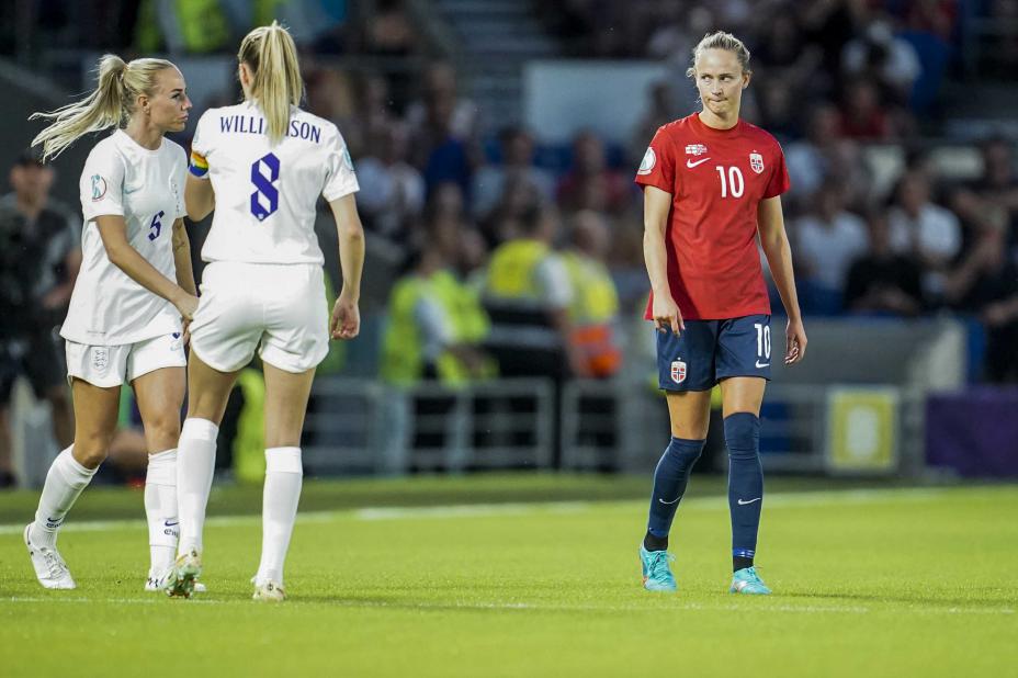 De første minuttene så det ut som Norge hadde en plan som fungerte. De dyttet England tilbake med noen langpasninger, fant rom til å spille og holdt vertene unna sin egen banehalvdel. I VM-kvartfinalen i 2019 scoret England før det var spilt tre minutter. Denne gang nærmet ikke hvittrøyene seg Norges felt før det var spilt nesten ti. Men da kom Maria Thorisdottir på feil side i en duell med Ellen White, og England fikk straffespark. Sterke norske protester nyttet ikke, og Georgia Stanway banket ballen i hjørnet.