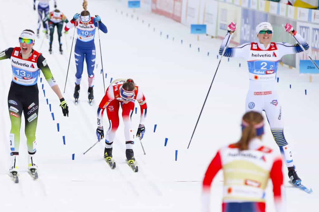 Norge var først inne på stadionen, men Sverige kom i en forrykende fart. Falla klarte heller ikke å holde Anamarija Lampic bak seg, og hun sikret et småsjokkerende sølv for Slovenia, som ledes av Ola Vigen Hattestad.