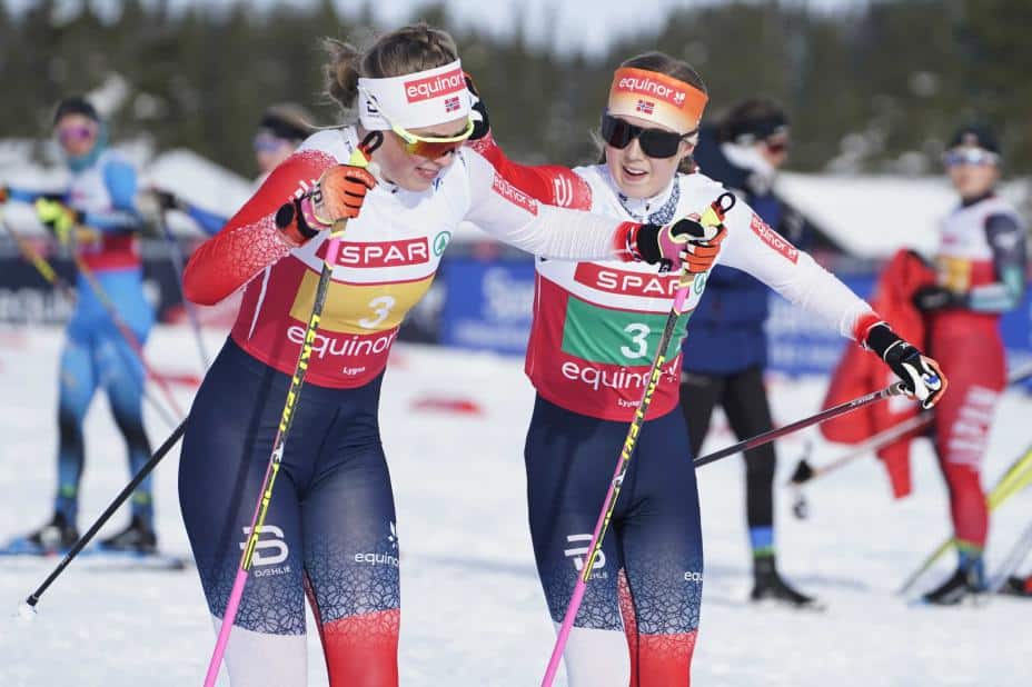Sport: Det skilte 0,1 sekunder mellom de to første lagene i mål. Tyskland tok bronsen, slått med 35,4 sekunder. Det ble gått fire etapper a 3,3 kilometer.