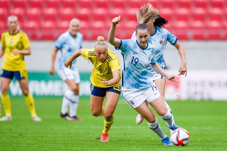 Spissen Stina Blackstenius sendte Sverige i føringen 20 minutter ut i 2. omgang, og det ble kampens eneste mål. Amalie Eikeland så ut til å bli snytt for straffespark da hun gikk i bakken i 16-meteren etter en takling, men dommeren vinket spillet videre.