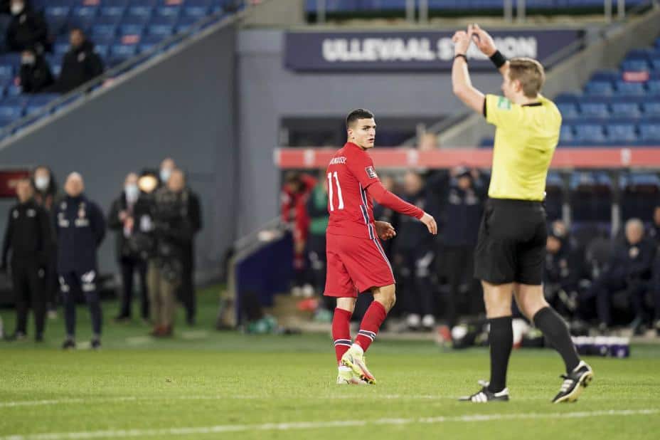 Fare på ferde var det også i omgangens siste sekunder da Thorstvedts ballerobring førte til en giftig kontring. Moi skjøt, men Sørloth sto i veien for skuddet, og det oppsummerte på mange måter en frustrerende omgang for Norge.