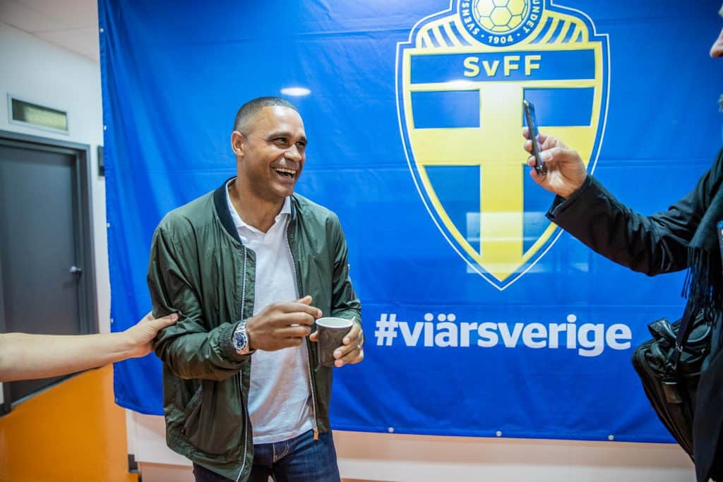 Han jobber nå som fotballekspert for SVT i Sverige. Lørdag var han på plass i Friends Arena.