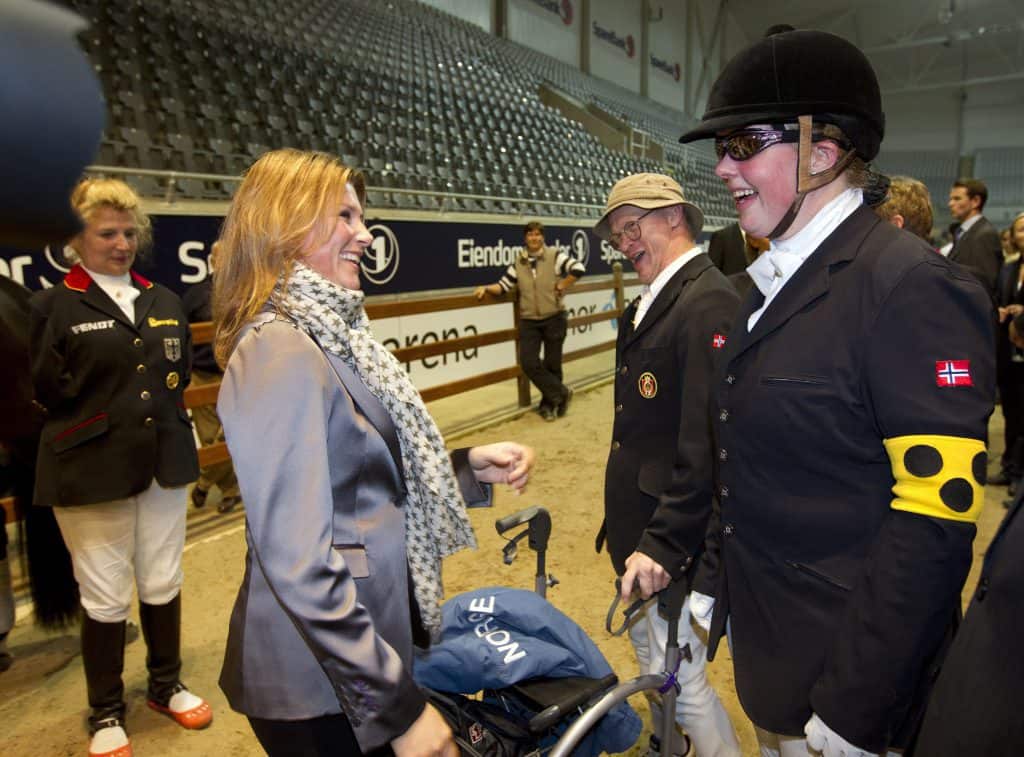 Jens-Lasse Dokkan (til h.) vant EM-gull i paradressurridning onsdag. Her møter han prinsesse Märtha Louise i forbindelse med en utgave av Oslo Horse Show. Foto: Gorm Kallestad / NTB scanpix