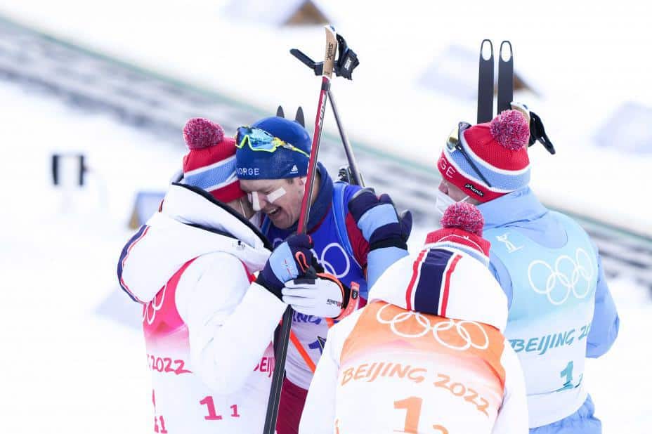 Det var Norges tredje OL-gull i øvelsen. Det ble norsk seier også i 2002 og 2010. Tarjei Bø var med på triumfen for tolv år siden.