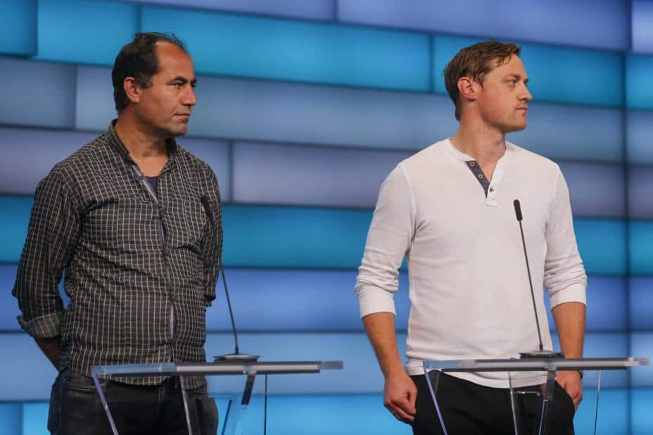 NRK-journalistene Lokman Ghorbani og Halvor Ekeland møtte pressen etter å ha kommet hjem fra Qatar. Foto: Trond R. Teigen / NTB