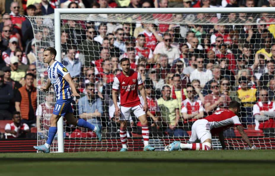 For det var et ganske blekt Arsenal-lag som stilte til kamp lørdag, og de ble straffet av et effektivt Brighton etter 28 minutter. En lang ball fra Lewis Dunk fant Enock Mwepu på høyrekanten, og han spilte 45 grader ut til Leandro Trossard, som kom stormende og hamret ballen i mål.