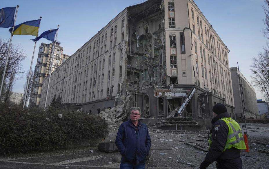 Da ble minst én person drept da raketter traff et boligområde i bydelen Solomjanskyj, ifølge ordfører Vitalij Klitsjko.