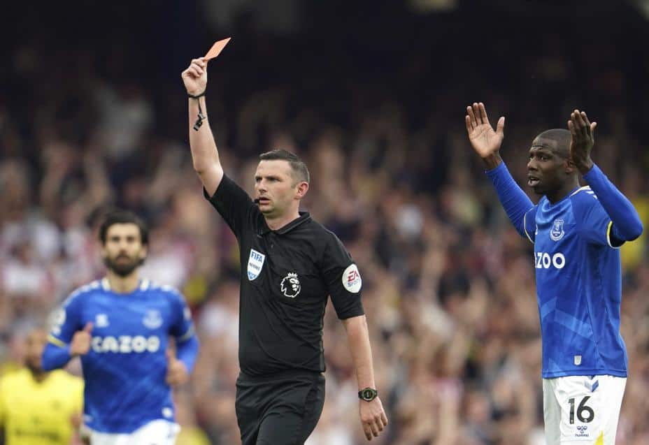 Everton hadde allerede tatt ledelsen ved Dominic Calvert-Lewin da Richarlison ropte på straffe etter 18 minutter. Drakten hans ble holdt av Kristoffer Ajer og sto ut som et seil, men dommer lot spillet gå. Brentford banket ballen i angrep, der Ivan Toney på vei gjennom ble hindret av Jarrad Branthwaite. Dommeren dro opp det røde kortet.
