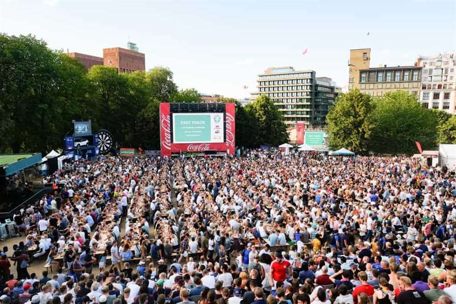 Slik har det sett ut på Kontraskjæret i Oslo under tidligere fotballmesterskap. Til sommeren vises fotball-VM for kvinner. Foto: Fredrik Hagen / NTB scanpix