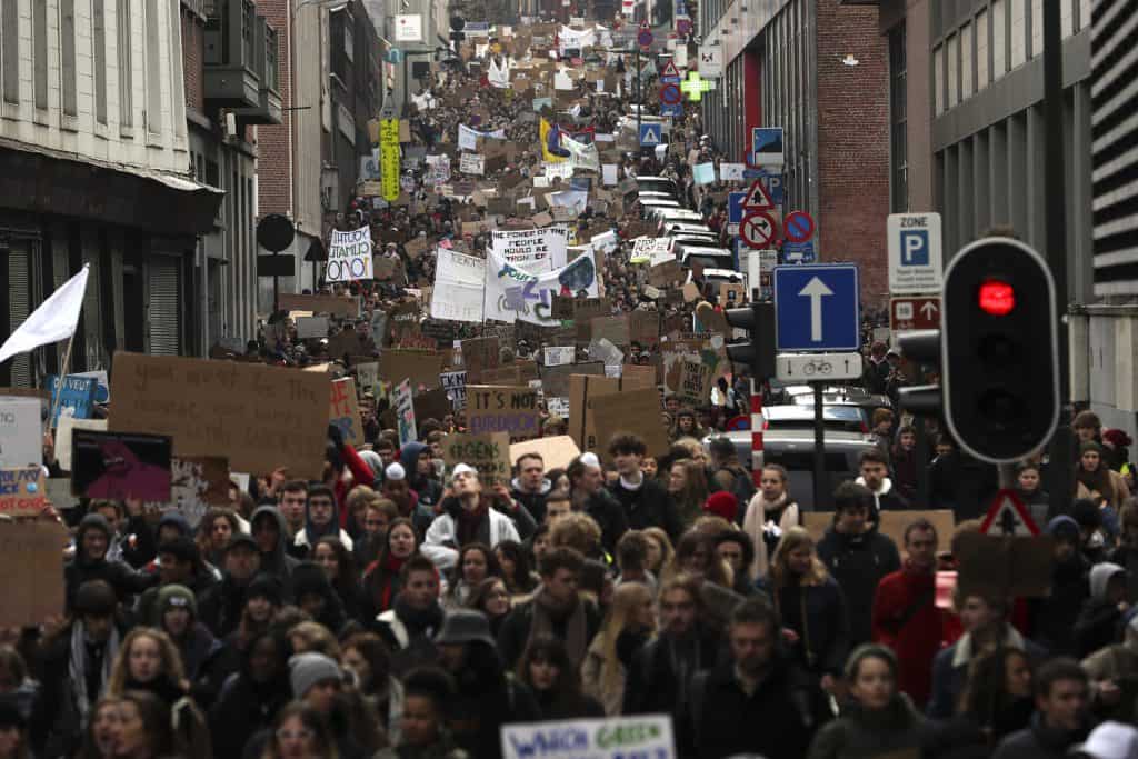 Natur og miljø: I Brussel marsjerte minst 12.500 elever gjennom gatene torsdag. Minst like mange protesterte i Liege, og i tillegg var det demonstrasjoner i flere andre belgiske byer.