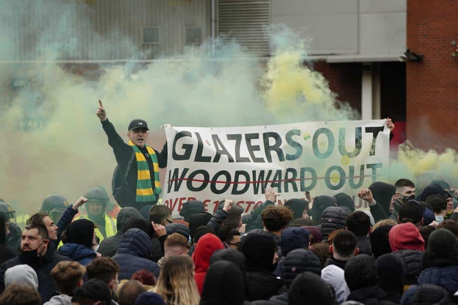 Sport: Det var på forhånd ventet nye protestaksjoner mot United-eierne foran torsdagens storoppgjør på Old Trafford. Kampen skulle ha vært spilt nylig, men måtte utsettes på grunn av opptøyer.