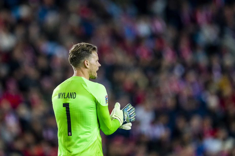 Sport: Leipzig-trener Marco Rose røpet allerede fredag at 32 år gamle Nyland ville få vokte buret lørdag. Årsaken var at førstekeeper Janis Blaswich har trøbbel med en leggskade og ble hvilt foran kommende ukes viktige mesterligamøte med Sjakhtar Donetsk.
