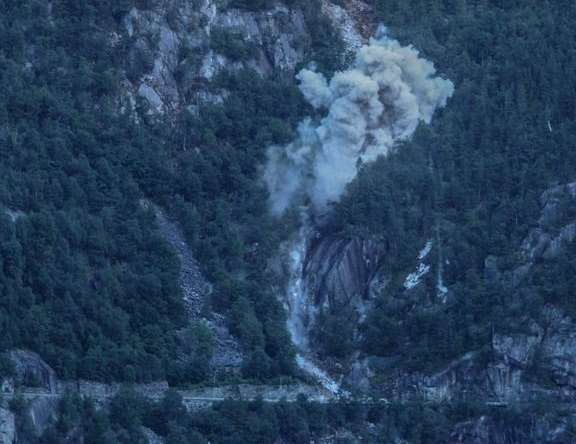 Steinras: Det var klokken 16.04 at det kom inn meldinger om et nytt steinras like overfor Odda sentrum.