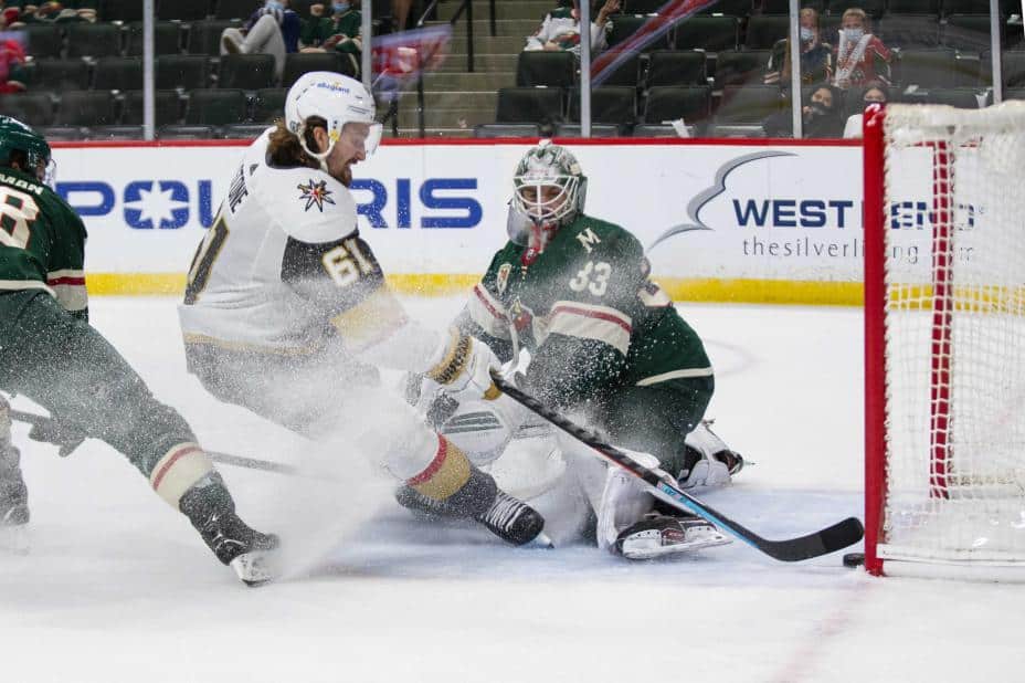Gjestenes målvakt Marc-Andre Fleury gjorde 35 redninger for Vegas Golden Knights og bidro sterkt til at Minnesota Wild ikke fikk uttelling i kampen. Nicolas Roy scoret kampens første og siste mål, mens lagkameratene Alex Tuch og Mark Stone sørget for at det ble 4-0-seier.