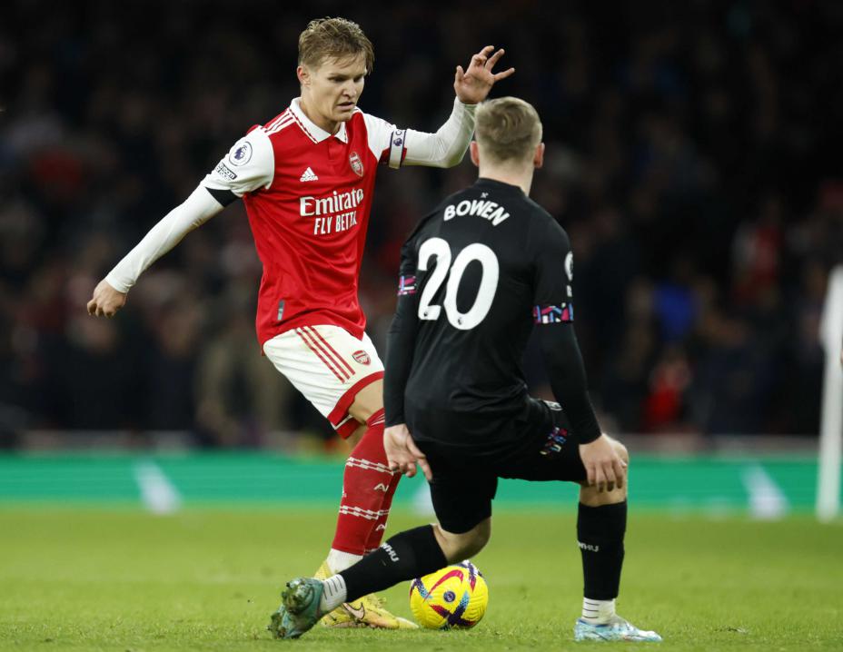 Martin Ødegaard høster mange lovord for prestasjonen sin da serieleder Arsenal slo West Ham i Premier League mandag.