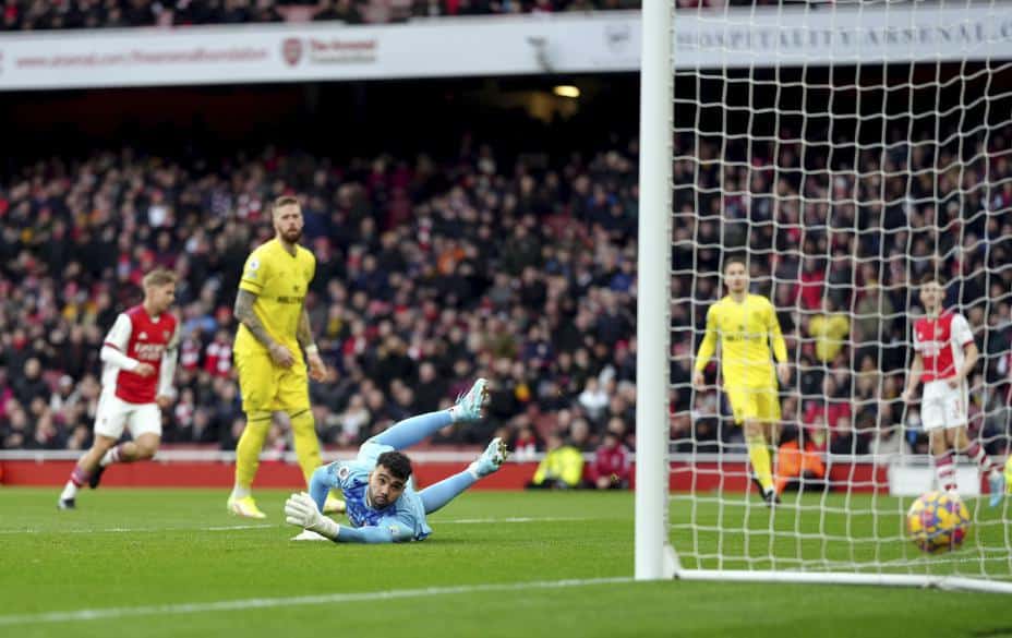 Rett i forveien hadde Martin Ødegaard hatt en kjempesjanse. Nordmannen kom alene med keeper, men Brentford-keeper David Raya fikk en hånd på avslutningen. Deretter fikk gjestene ryddet ballen unna.